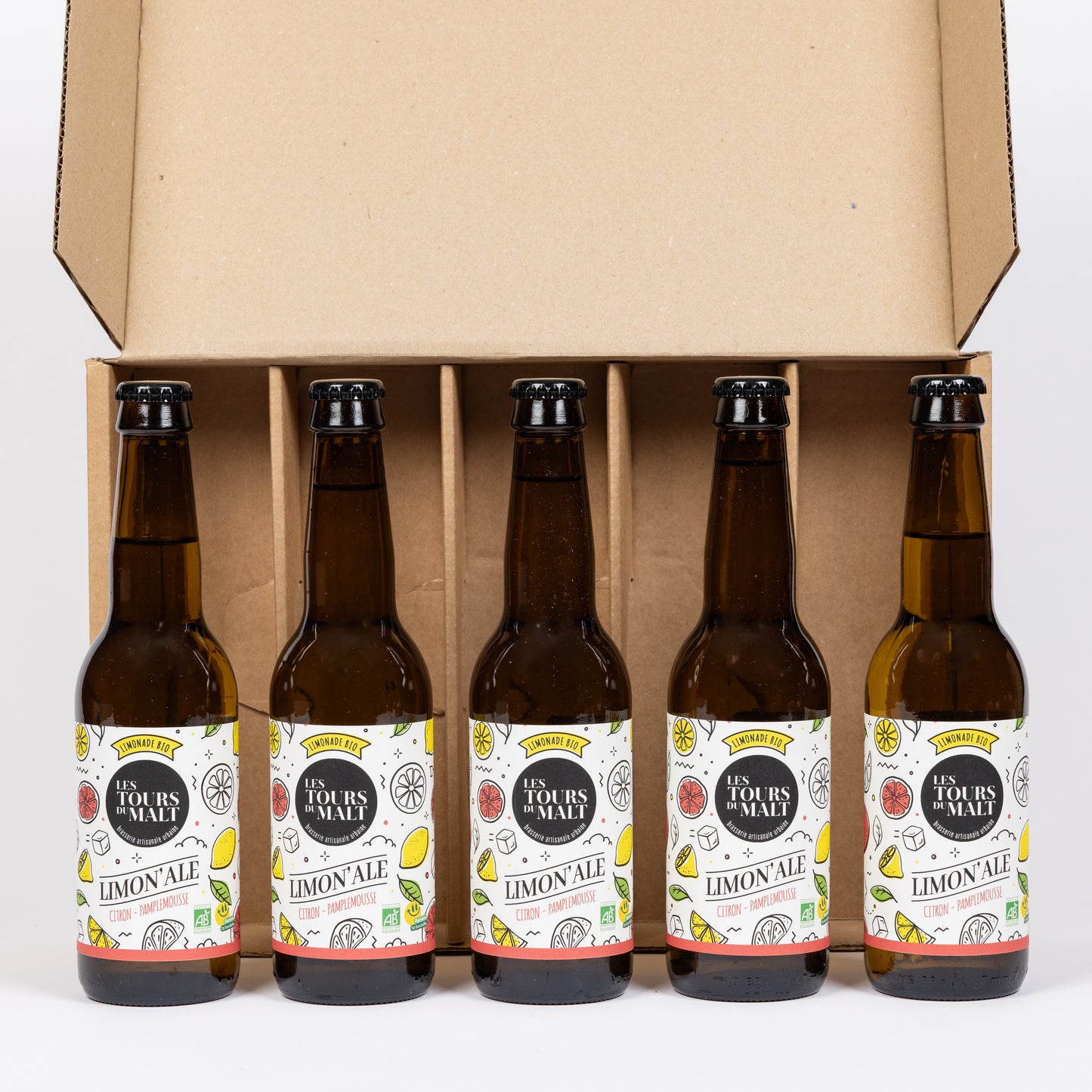 5 bouteilles de limonade artisanale (33cl), élaborées avec soin par le duo père & fils Hervé et Clément, de la brasserie Les Tours du Malt.