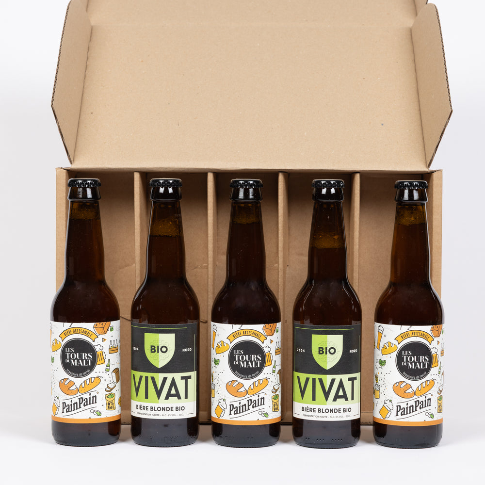 Une sélection de 5 bières artisanales en bouteilles de 33cl, entre lager rafraîchissante et bières originales au pain, pour une dégustation variée et engagée.